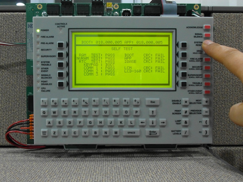수신기 부팅시 "SYSTEM RESET" 키를 눌러 줍니다. 자체 테스트에서 "KEYPAD"항목에 "BOOT"가 표시될때까지 눌러 줍니다.