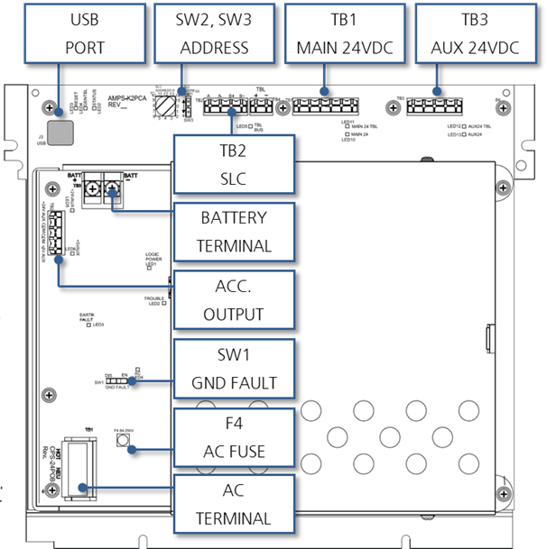 AMPS-K2 / TB3 : AUX 24V 단자에 연결된 케이블을 제거합니다.