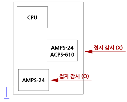 이러한 경우, 접지 장애를 감시하는 능력을 하나의 전원반에만 부여하고, 나머지 전원반에는 접지 감시 기능을 정지(Disable) 시켜야 합니다. 이때, 접지 장애를 감시하는 전원반은 CPU와 연결된 AMPS-24에게 부여하시는 것이 좋습니다.