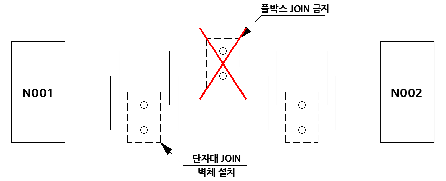 네트워크 배선은 단자대를 이용하여 배선 연결을 해야 합니다. 풀 박스내 결선(Joint)를 금지합니다.