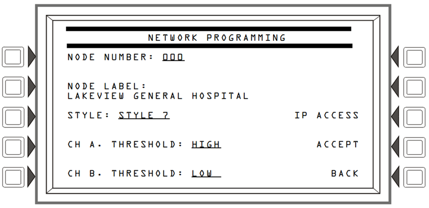 MAIN MENU -> PROGRAM ALTER / STATUS -> 암호 입력 -> ACCEPT -> PANEL PROGRAM -> NETWORK PARAMETERS