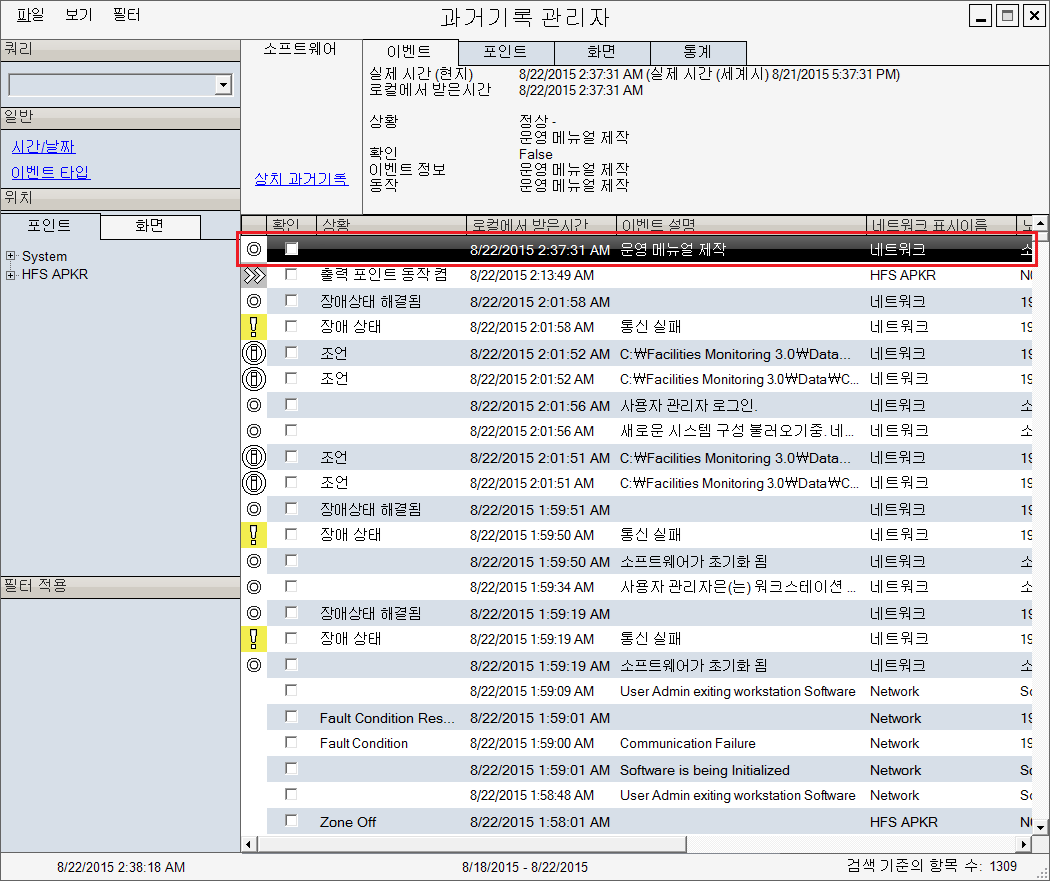 ONYXWroks가 소속된 네트워크에서 발생한 과거기록을 보는 기능입니다.