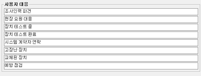 사용자 대응은 평면도 영역에서 특정 "포인트 아이콘"을 마우스 오른쪽으로 눌러 운영자의 대응조치를 쉽게 입력할 수 있도록 사전에 이미 설정해 놓는 기능입니다.