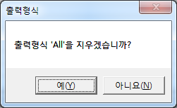 "출력 형식"아래의 드롭다운 메뉴에서 삭제하시고자 하는 출력 형식을 선택합니다.
