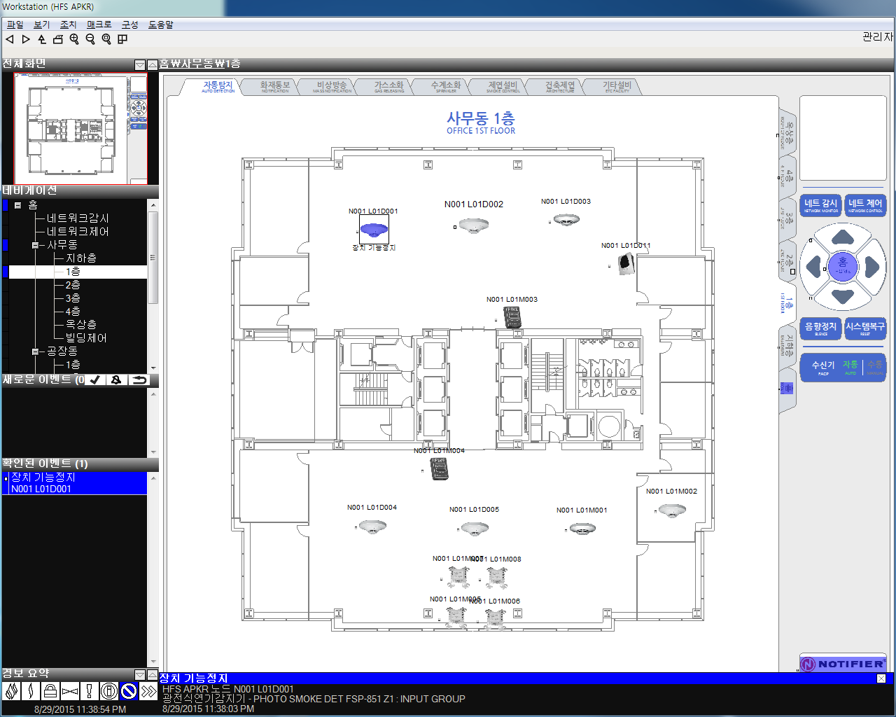새로운 이벤트가 발생할 때, 해당 이벤트를 발생시킨 기기가 속한 화면으로 이동하는 것은 아래의 "이벤트시 화면 자동 이동"을 참조하여 주시기 바랍니다.