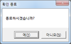 실행시 위의 확인 창이 팝업됩니다. "예"를 선택하면, 프로그램이 종료되며, 경우에 따라 컴퓨터가 종료될 수 있습니다.