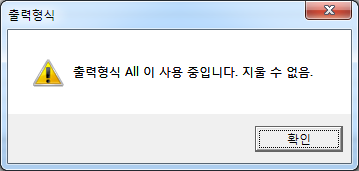 만약, 선택하신 출력형식이 이벤트 프린터에 사용하도록 선택된 경우, 아래와 같은 경고창이 발생합니다.