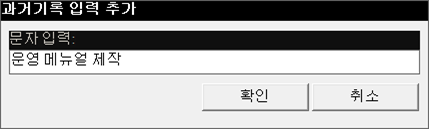 예를 들어, 위와 같이 문자 입력에 "운영 메뉴얼 제작"이라는 문장을 입력하고 "확인"을 누르시면, 과거기록에 해당 내용이 아래와 같이 기록됩니다.