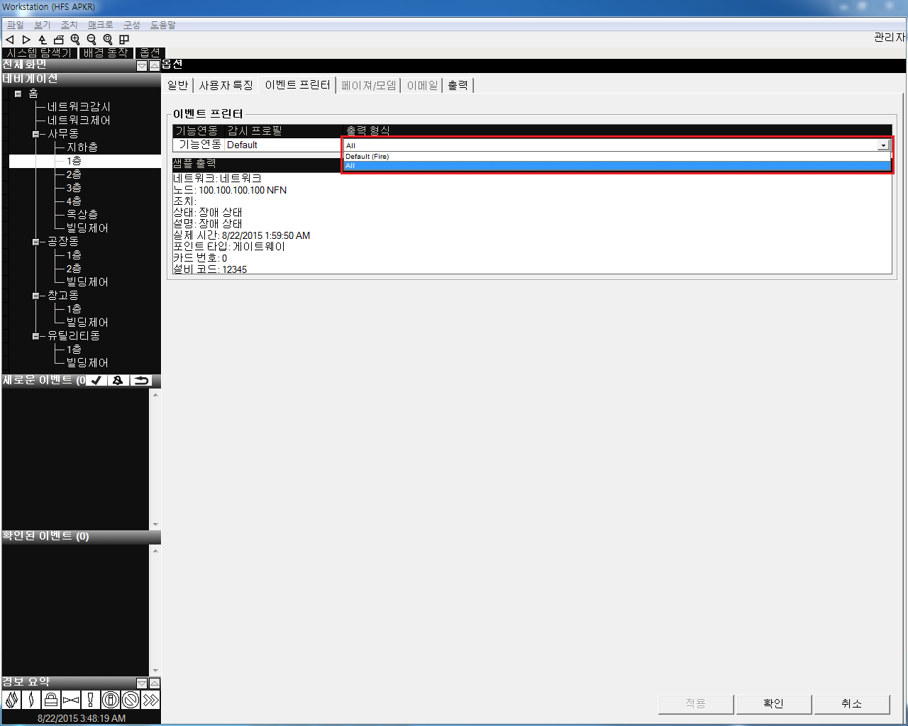 장치타입 : 해당 이벤트가 발생한 장치의 종류를 표시합니다. (예 : 게이트웨이, 광전식 감지기, 출력 중계기 등…)